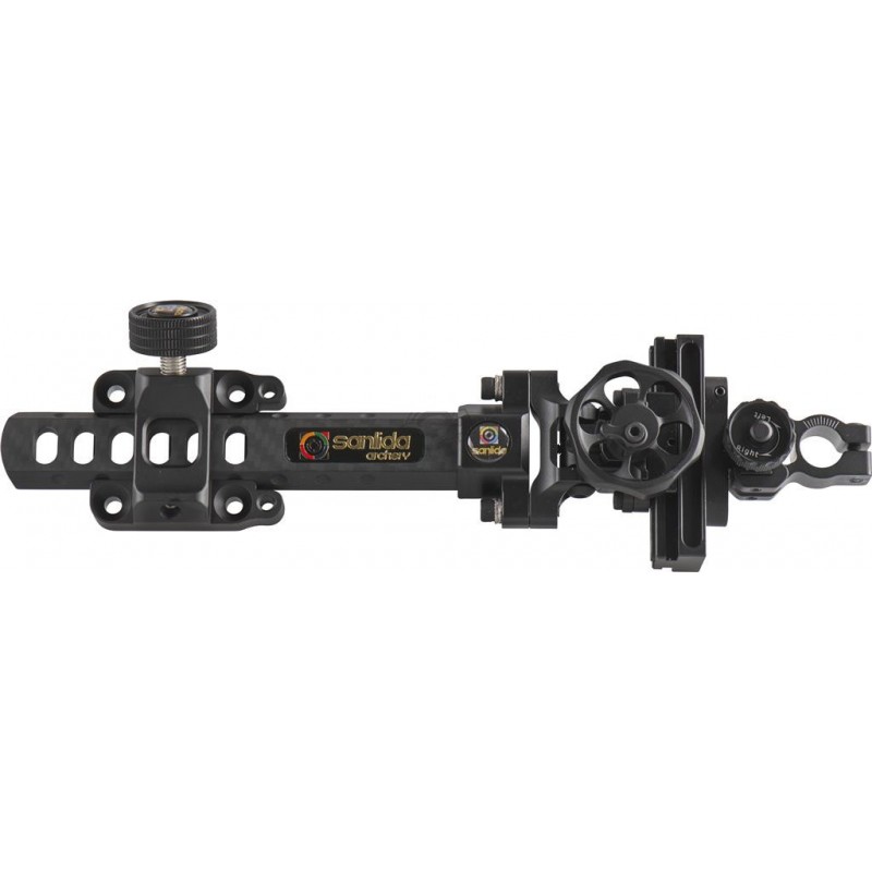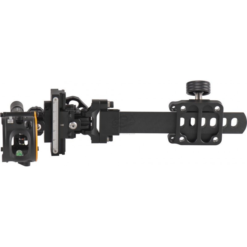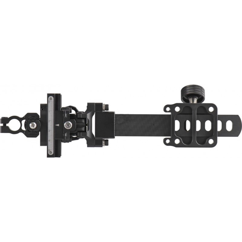 Głównym atutem tego modelu jest zastosowanie 6-calowego carbonowego wysięgnika. W przeciwieństwie do celowników montowanych bezpośrednio do majdanu łuku, długi wysięgnik pozwala na odsunięcie obudowy celownika od łuku. Bezpośrednio przekłada się to na większą precyzję i ciaśniejsze grupy na tarczy. Zastosowanie karbonu zamiast aluminium w tym elemencie pozwoliło na redukcję wagi oraz lepsze tłumienie drgań po strzale.
