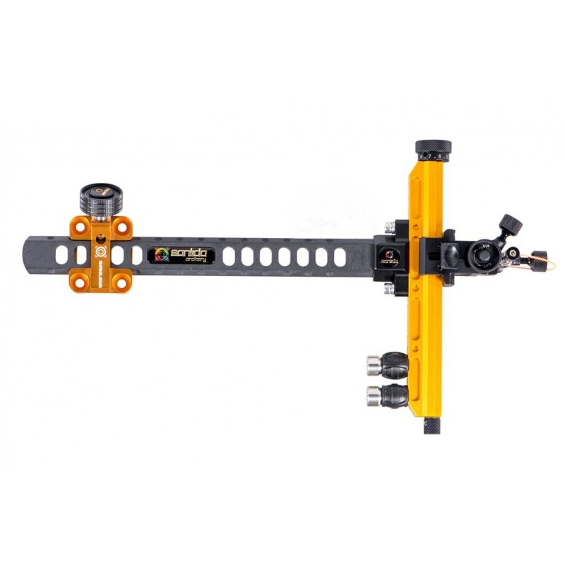 Model ten umożliwia regulację w trzech płaszczyznach: mikroregulację w pionie i poziomie oraz szybki przesuw bloku celownika w pionie za pomocą przycisku. Na szynie pionowej znajdują się dwa regulowane dampery, które pozwalają dostosować poziom tłumienia drgań do preferencji łucznika i charakterystyki łuku.
