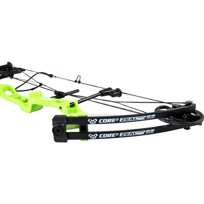 Sercem zestawu jest łuk Zeal Junior, którego największą zaletę stanowi szeroki zakres regulacji. Dzięki temu łuk rośnie razem z łucznikiem. Model ten jest niewielki, bo jego długość to 26" od osi do osi (ATA). Jest też wyjątkowo lekki, gdyż waży zaledwie 885 g, co ułatwia naukę prawidłowej techniki strzelania bez nadmiernego zmęczenia.