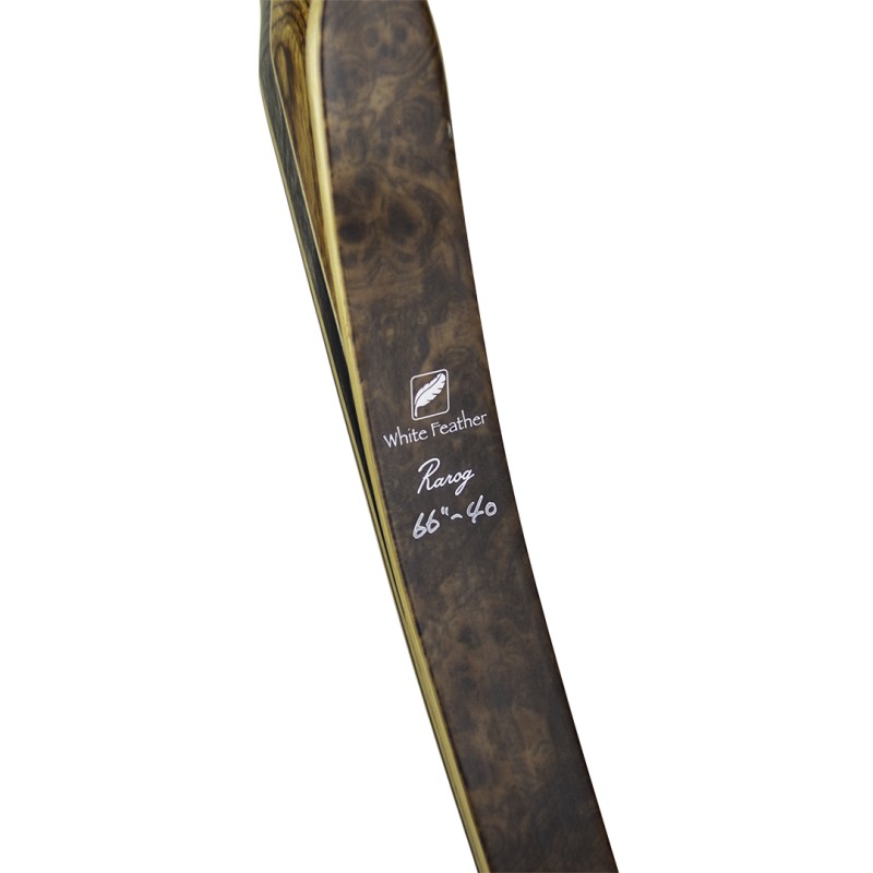 Łuk White Feather Rarog wykonany jest z drewna dymondwood, bambusa, paduk i jednokierunkowego carbonu.