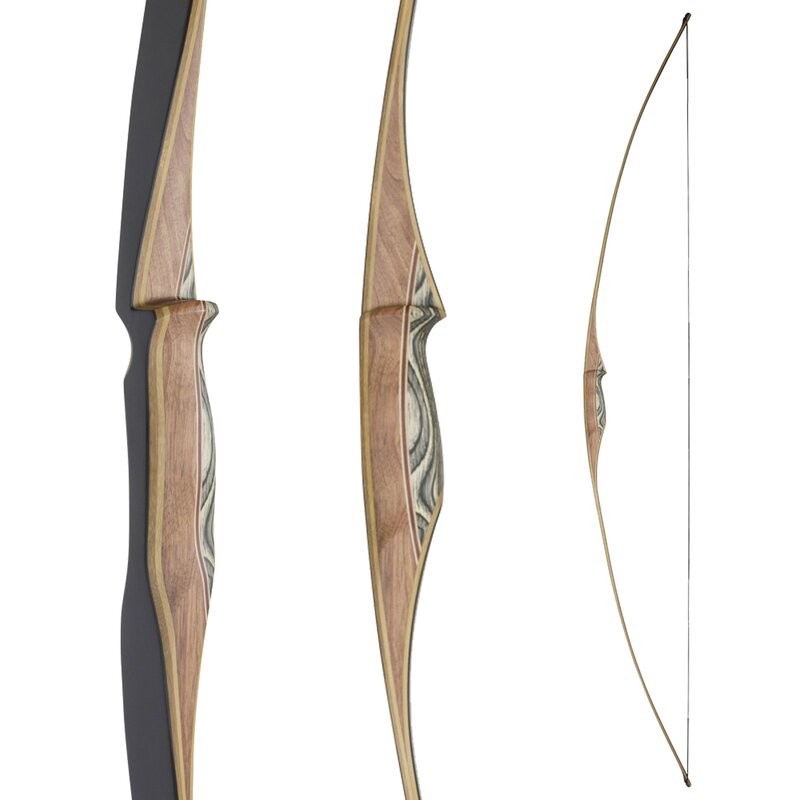 Łuk typu "modern longbow", z anatomiczną, dopasowującą się do dłoni rękojeścią i oknem z półką pod strzałę.