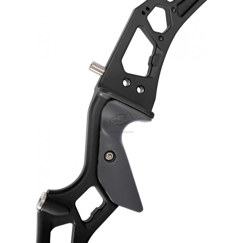 Ogromną zaletą tego modelu jest pełen zestaw gniazd montażowych. Core Jet V2 posiada gwinty pod celownik, stabilizator, button, wkręcaną podstawkę pod strzałę oraz clicker. Pozwala to na naukę prawidłowej techniki strzelania sportowego i stopniową rozbudowę łuku o kolejne akcesoria. Ergonomiczny, plastikowy uchwyt ułatwia poprawne ułożenie dłoni.