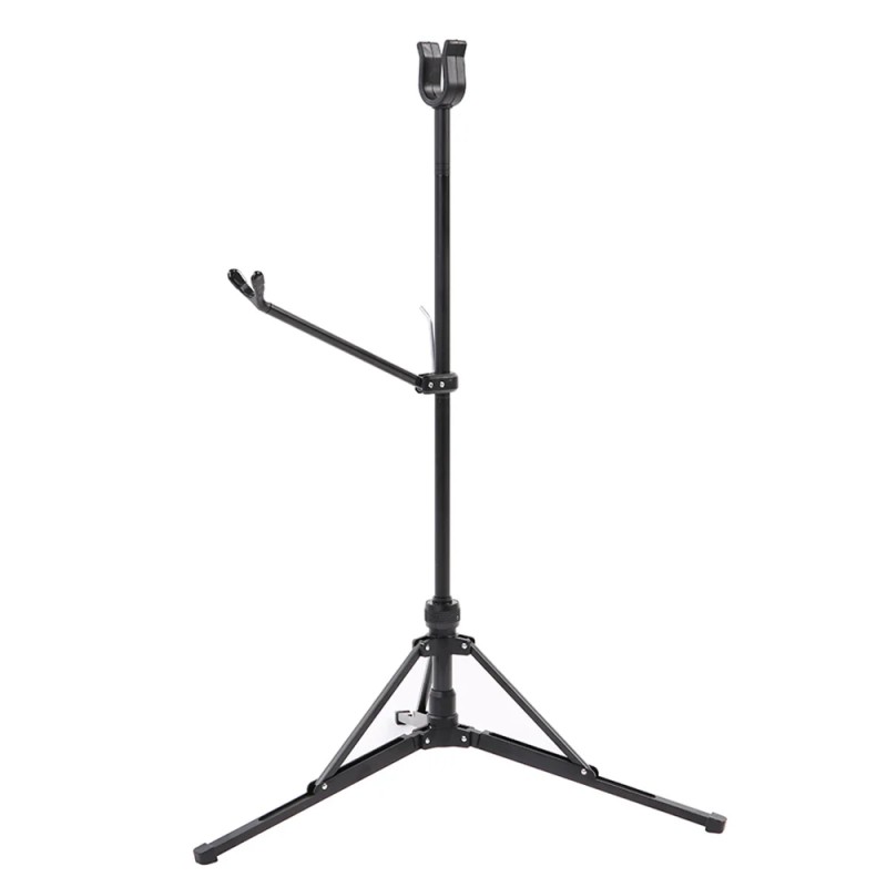 - Stojak wykonany z grubej stali i aluminium, stabilny i trwały.