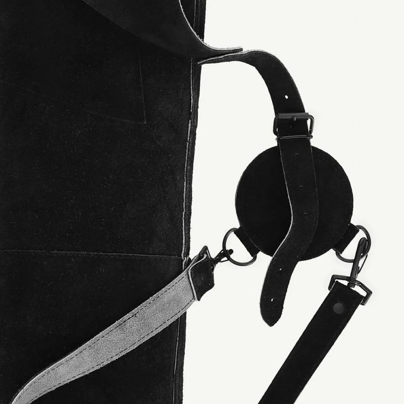 • Wykonany z wysokiej jakości zamszowej skóry bydlęcej w kolorze czarnym.
