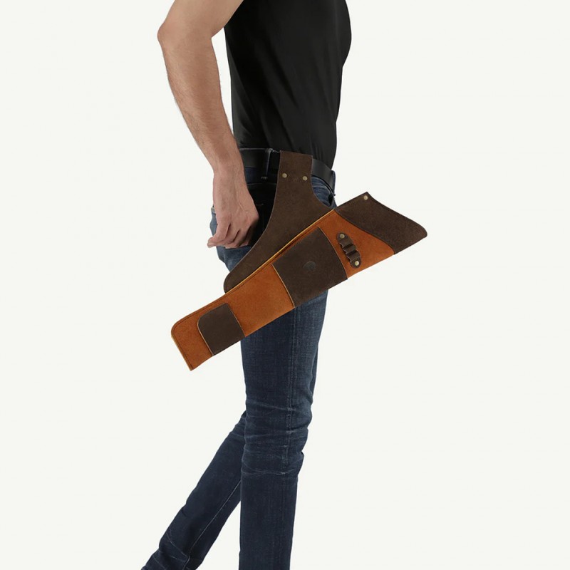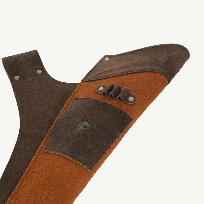 Kołczan został wykonany z wysokiej jakości, wytrzymałej zamszowej skóry bydlęcej i jest dostępny w wariancie dla łuczników prawo- i leworęcznych (RH/LH).