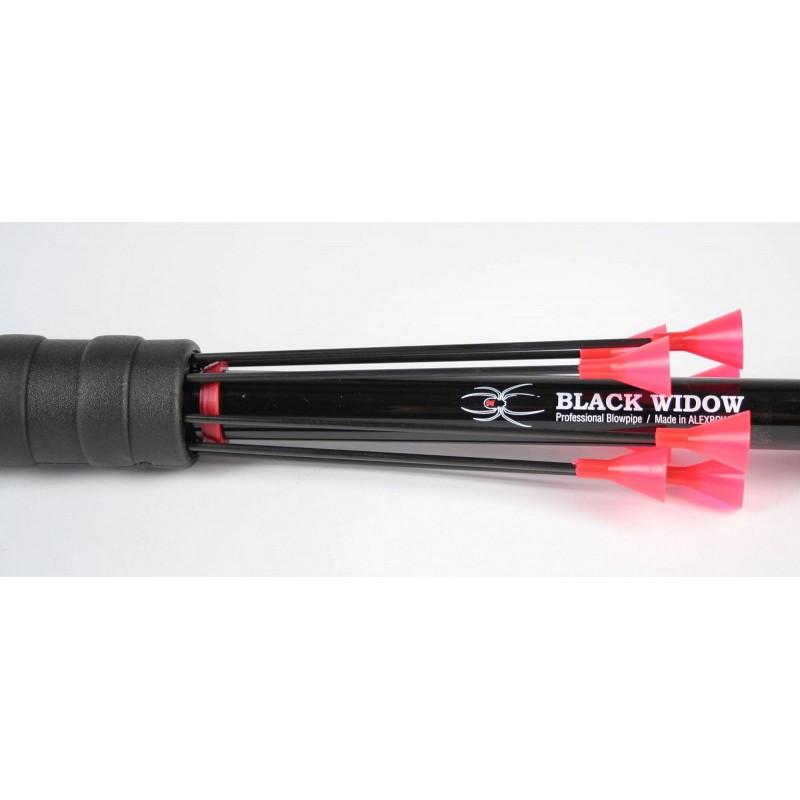 Model Black Widow Professional to sprzęt stworzony dla zawodników szukających bezkompromisowej stabilności. Lufa wykonana jest z tego samego, zaawansowanego kompozytu co wersja Standard (50% karbon / 50% włókno szklane), co gwarantuje sztywność i tłumienie drgań. Jednak wersja Professional jest wyraźnie cięższa – waży 510 g (wobec 425 g w wersji Standard). Ta dodatkowa masa jest celowym zabiegiem – dociążona dmuchawka jest znacznie stabilniejsza przy celowaniu, mniej podatna na drżenie rąk i ma mniejszy odrzut, co jest kluczowe w strzelectwie precyzyjnym.